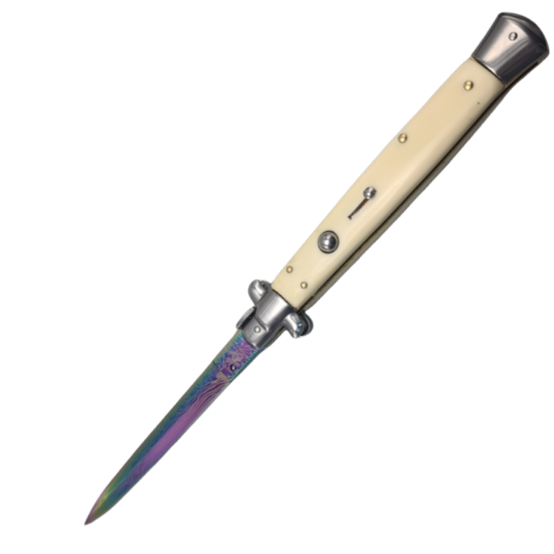 8.75 Inch Italian Stiletto Switch Kris Blade Fick Knife Black with White Handle