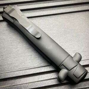 Get it best of both worlds with the automatic 9-inch Italian stiletto OTF. This knife brilliantly combines the classic style of an Italian stiletto and the tactical speed of an OTF. A front-loaded thumb slide fires and retracts the blade with smooth automatic precision. Add a unique design to your collection with the 9″ Italian Stiletto OTF Auto.