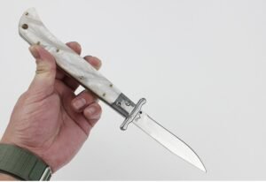 The AKC Mafia Folding Knife combines practical functionality with classic Italian style. Inspired by traditional mafia stiletto knives, this piece is perfect for knife enthusiasts, collectors, and everyday users alike.
