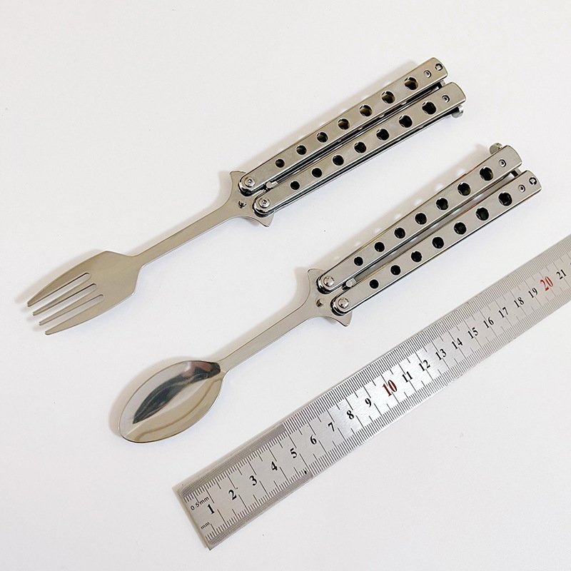 Balisong Spoon Butterfly Training Knife Practice Knife Throwing Carry Soup Spoon Fork